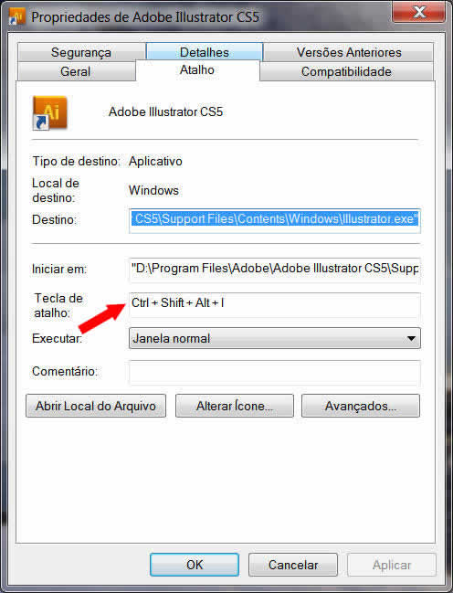 Para criar um atalho de teclado para qualquer objeto, clique no ícone de seu atalho com o botão direito, acione a entrada “Propriedades” e certifique-se que está na aba “Atalho” (em geral é a que aparece aberta por padrão). Procure pela caixa “Tecla de atalho” e clique sobre ela (e não se preocupe se aparentemente nada acontecer, ou seja, se o cursor não surgir piscando dentro dela; é assim mesmo). Agora, escolha uma combinação de teclas que você tenha certeza que Windows não atribuiu a outra função (a melhor forma de fazer isto é combinar uma tecla de caractere simultaneamente com Ctrl +Shift+ Alt; veja, na figura, que para carregar o excelente Adobe Illustrator eu escolhi a combinação “Ctrl +Shift+ Alt+I”) e simplesmente acione-a. Você verá a combinação aparecer no interior da caixa. Clique então em “Aplicar” ou simplesmente saia com OK. Isto é tudo. Agora, cada vez que você acionar a combinação escolhida o programa será imediatamente carregado. Mas, a não ser que sua memória seja prodigiosa, limite-se a fazer isto apenas para os programas mais usados...